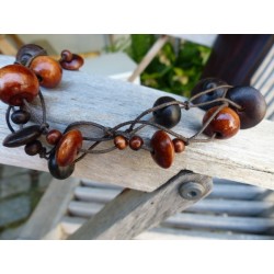 Colliers fantaise et pendentifs réalisés à la main dans des matières naturelles telles que le bois, la terre cuite, l'agathe ou l'ivoire végétal (tagua). Origine: artisanat africain, indonésien, équatorien et français.
