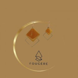 Boucles d'oreilles fantaisie - Laiton et résine - Couleur ocre
